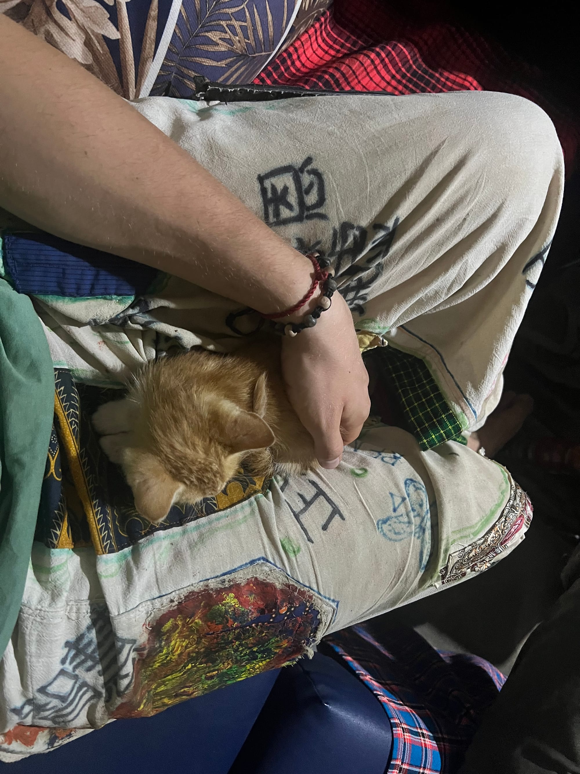 Es gibt einen Hund und ein paar Hühner. Die Wände bestehen aus langen Stöckern, die von außen von hellbraunem Lehm verdichtet wurden. Das Dach ist als und sehr schäbig und der Innenraum besteht auch aus Lehm über Ästen, mit drei süßen Sofas an den Wänden und hübsche Bilder von den Eltern und ihrer Hochzeit über den Sofas. Seine Mutter kocht hinten und als wir sie besuchen gibt sie mir einen Vortrag in Swahili darüber, wie schädlich und gefährlich es ist barfuß zu sein, und noch viel wichtiger: ich solle niemandem trauen, weil Menschen in jedem Moment wechseln können, wer wir sind. Ihr Sohn, der übersetzte, dreht sich zu mir und fragt ob ich das wüsste… ich sage nein und denke ja. Mama China kocht Bohnen zusammen mit Maiskörnern. Das Gericht ist in der Gegend der Maasai mehr verbreitet als Zuhause in Mwanza bei den Menschen des Sukuma Stammes. Ich lerne ein paar Wörter aus der Sprache der Maasai von den restlichen Freunden die später vorbei kommen, aber bin nicht ganz fähig sie schriftlich festzuhalten. Wenn menschen sagen möchten, dass sie etwas wissen, also ‘Ich weiß!’ dann sagen sie ein Wort, das ganz genau wie ‘Yellow’ im Englischen klingt. Die Schar aus jungen Männern versammelt sich im Wohnzimmer und alle bekommen einen großen Teller voll mit Bohnen und Mais gekocht. Ein älterer Bruder kommt von der Straße herein und besitzt selbst nichts, also fragt er hier nach Essen. Er bekommt ohne Zögern auch einen vollen Teller vom Gastgeber und geht wieder. Die Männer um mich herum sind dermaßen cool, aber wie soll man in Worte fassen mitten in Tansania zu sitzen, in einem Raum voll mit jungen Mitte zwanzig Jährigen, die dick in alle möglichen Arten von Jacken und Mützen gekleidet sind, sich auf einer Sprache und einem Slang unterhalten, der nicht cooler sein könnte, während die eine weiße Glühbirne über uns die Wände und die Stöcker unter dem Lehm beleuchtet. Ich sitz bei und bin an meinem 24. Dezember doch noch irgendwo angekommen. Als ich fertig mit dem Essen bin, setzt mir jemand die Babykatze auf den Schoß und jene schläft sofort ein. Noch kurz, und dann sagt mein Gastgeber nun aufzubrechen. Es ist stockfinster, aber auch im dunkeln schaffe ich dieselbe Straße wieder hoch zu laufen. Der Rucksack macht vieles vom Leid aus, aber barfuß laufen habe ich zu genüge in den letzten zwei Jahren geübt, so dass das nun auch schmerzfrei im Dunkeln auf solchem Terrain funktioniert.